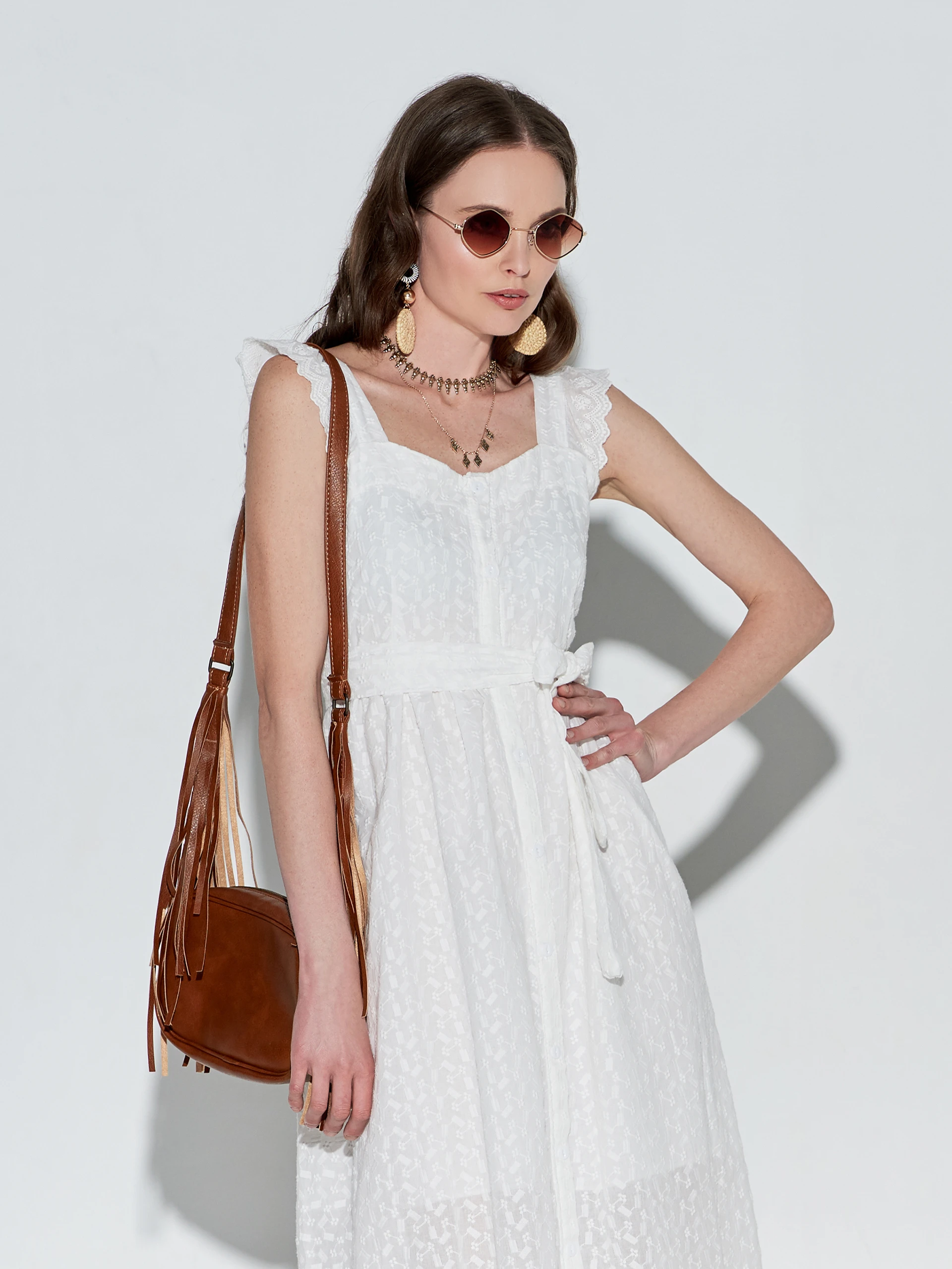 The Blanc Broderie Dress captures the essence of refined femininity with its intricate embroidery and crisp white finish. Crafted for warm-weather elegance, it features a sleeveless cut and a graceful calf-length silhouette that offers both comfort and charm. Lightweight, breathable, and effortlessly polished, this dress transitions seamlessly from daytime events to evening gatherings — a timeless staple for the modern wardrobe.