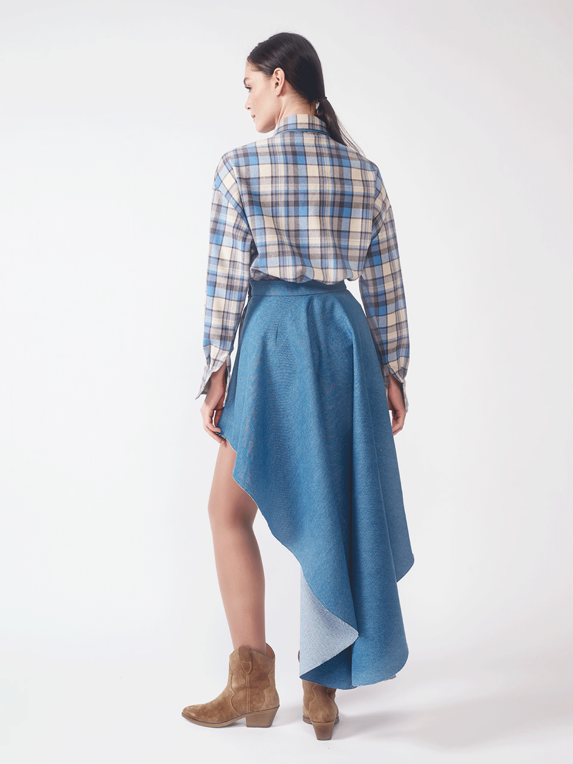 The St. Trinians Shirt blends vintage schoolgirl charm with modern versatility. Designed in a soft plaid of gray, blue, and light brown, it adds a preppy twist to your everyday wardrobe. The relaxed silhouette makes it ideal for layering over turtlenecks or pairing with jeans for a casual weekend look. Whether worn buttoned-up or open over a tee, this shirt strikes the perfect balance between playful and polished.
